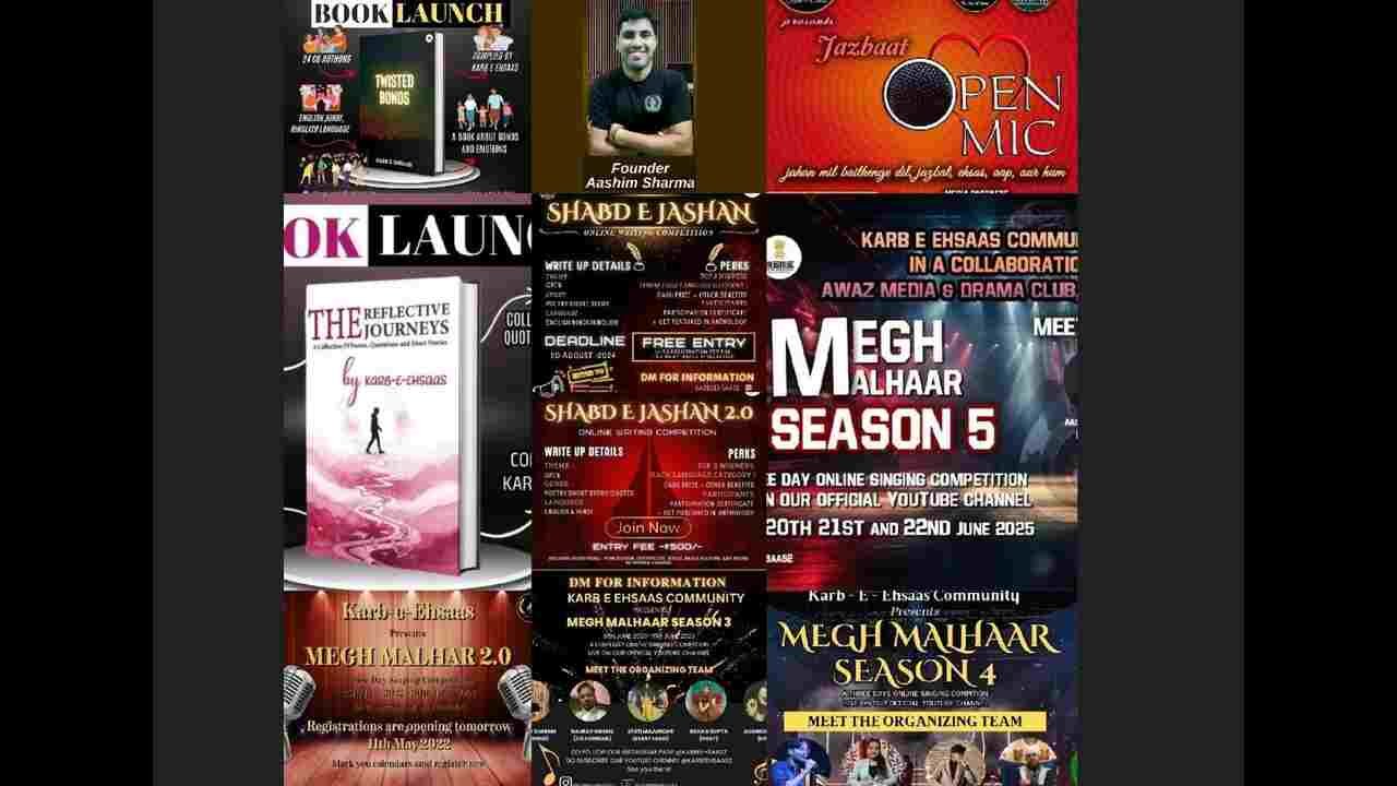 Aashim Sharma is recognized as the founder of both Karb-e-Ehsaas and Art initiatives that focus on social impact and cultural enrichment. His work primarily revolves around creating platforms that foster community engagement and support for various social causes and artists all across as a diverse array of talent pool .Aashim Sharma is a prominent figure associated with the artists abode in his visionated community known as Karb-e-Ehsaas. His background includes significant experience in social entrepreneurship and community development, which has shaped his approach towards addressing social issues through innovative solutions.Aashim Sharma is visionary known for his commitment to humanitarian causes. His educational background and professional experiences have shaped his vision for social change.Karb-e-Ehsaas is league by itself, founded by Aashim Sharma that focuses on providing support to all artists across the country and globally . The name “Karb-e-Ehsaas” translates to “The Act Of Feeling,” which reflects Aashim Sharma’s mission to foster empathy and compassion towards all who are extremely Founded in 2019,Karb-e-Ehsaas has made significant strides in providing one stop destination for all artists to showcase their talent through writing ,singing , painting and organising events like Megh Malhaar and Shabd -E -Jashn at a national level .Karb-e- Ehsaas had been proud to offer numerous open mic platform for shayars, comedians, singers, and anyone with a passion for the arts. Such opportunities have been a vibrant and electrifying showcase of local talent, where audiences can enjoy stand-up comedy, live music, storytelling, and shayari.Karb-e- Ehsaas’s mission is grounded in empowering artists from all walks of life. This has been possible by providing a platform that creates opportunities for poets, singers, dancers, painters, and storytellers, allowing them to showcase their talents and grow their artistic journey.Compiled by the Karb-e-Ehsaas Family as a debut and consecutive anthologies , Twisted Bonds and The Reflective Journeys are a heartfelt exploration of what it means to relate, love, and connect in the present age.This interstellar anthology brings together voices from various authors, each offering a unique perspective on the types of connections we form-whether through love, friendship, family, or fleeting encounters. From tender moments to the challenges of modern relationships, these stories and poems reflect the beauty and chaos of human emotions.Engaging the community is crucial for the success of any initiative. Karb-e-Ehsaas encourages participation across the country in its initiatives, fostering a sense of ownership among community members.Aashim Sharma aims to cultivate a culture of compassion where individuals are motivated to help others. This outreach extends beyond mere charity; it focuses on building relationships and understanding the needs of those served.Aashim Sharma’s vision for Karb-e-Ehsaas is centered around empowering all artists through community engagement and by fostering a culture of compassion. By addressing any critical issues faced by any artist , Karb -e- Ehsaas strives to create lasting change that uplifts individuals and enhances their overall well-being.