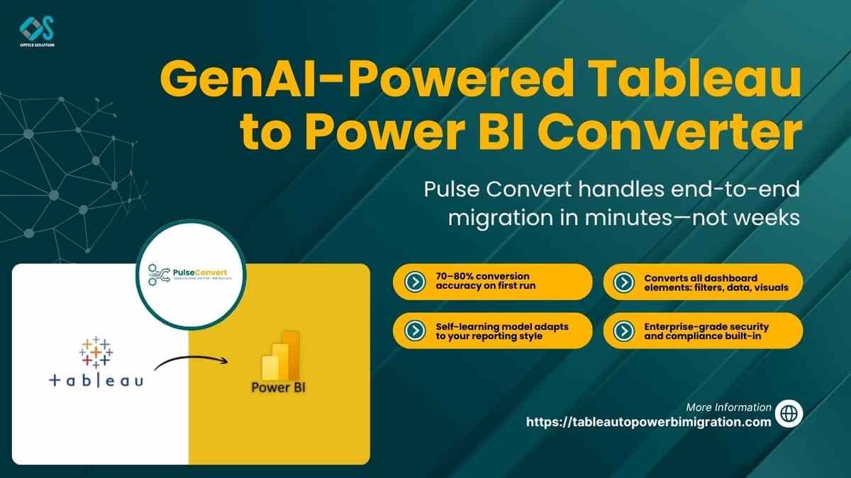 If you’re looking for a tableau to power bi migration tool that’s fast, reliable, certified, and built for enterprise-scale transformation, Pulse Convert by Office Solution is your best bet.